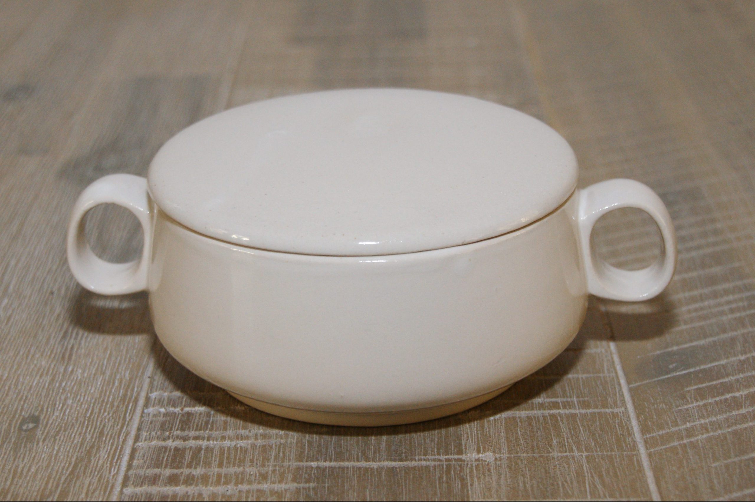 Soepkom met deksel, hoogglans wit diameter 10,5 cm, hoogte 5 cm